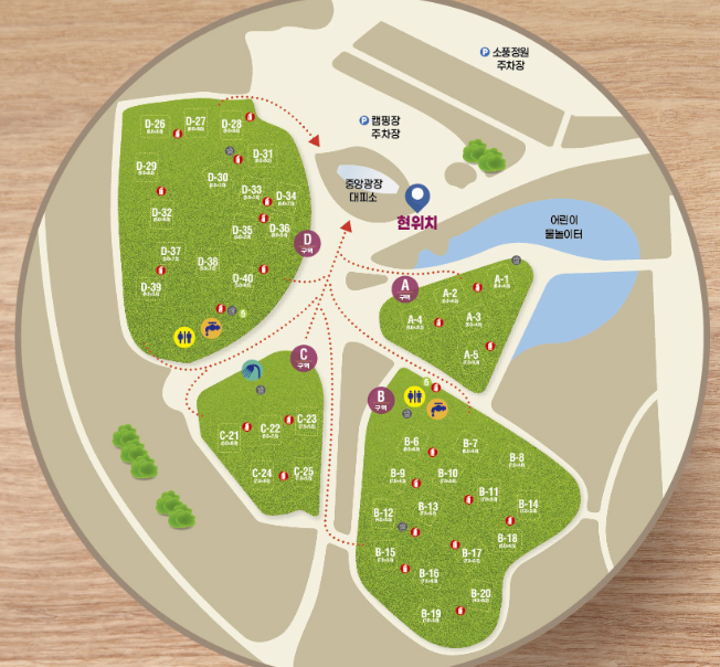 - 사이트크기: 32면 오토캠핑사이트, 7면 카라반사이트